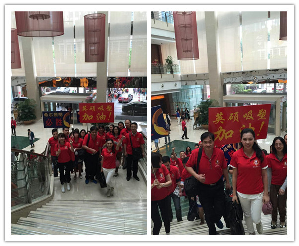 我們高舉著“英碩吸塑,加油!"抵達(dá)好日子大酒店!