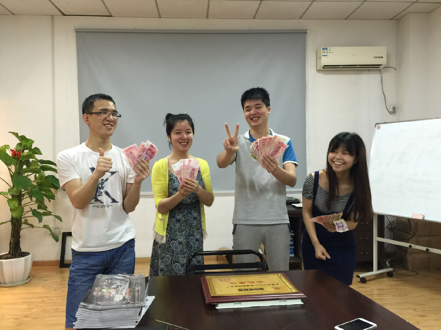 在英碩工作很開心,每天被這種工作氣氛所感染,而且每個(gè)人都非常能干,看這周我們拿獎(jiǎng)金的伙伴,開心的合不攏嘴,要請客喲,第一位帥哥是負(fù)責(zé)我們公司網(wǎng)絡(luò)運(yùn)營的,他有非常強(qiáng)的網(wǎng)絡(luò)實(shí)戰(zhàn)經(jīng)驗(yàn),我們公司高大上的網(wǎng)站就是出自他的手,中間這位美女是我們外貿(mào)部的伍姐姐,英文水平一流,而且還是外貿(mào)業(yè)務(wù)成交高手,看她與外國客戶溝通起來真誠自信的表情,真是好生羨慕呀,第3位是負(fù)責(zé)阿里巴巴平臺(tái)的推廣工作,我們阿里超級(jí)旺鋪就是他的功勞啦 ,最后一位小美女是我們跟單業(yè)務(wù)和售后服務(wù),她的甜美聲音可是迷到一大片哦。下周拿獎(jiǎng)金的又會(huì)是那些人呢?做為一個(gè)新人,也要給自己定個(gè)目標(biāo),下個(gè)月也要拿獎(jiǎng),不然跟不上大伙的步伐呀。