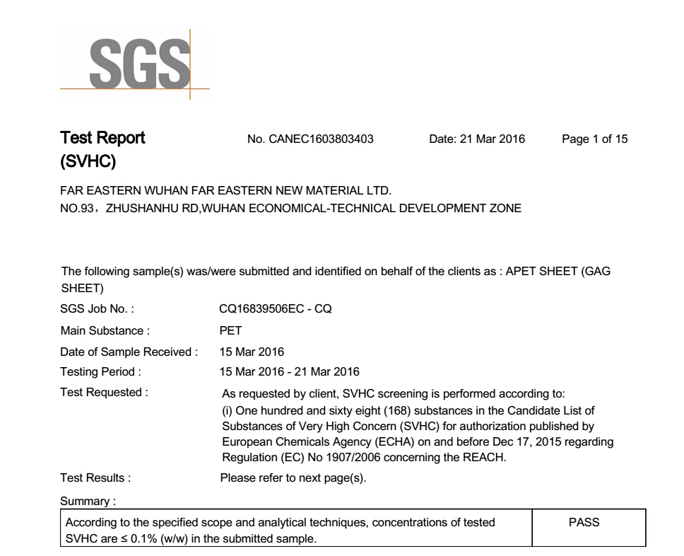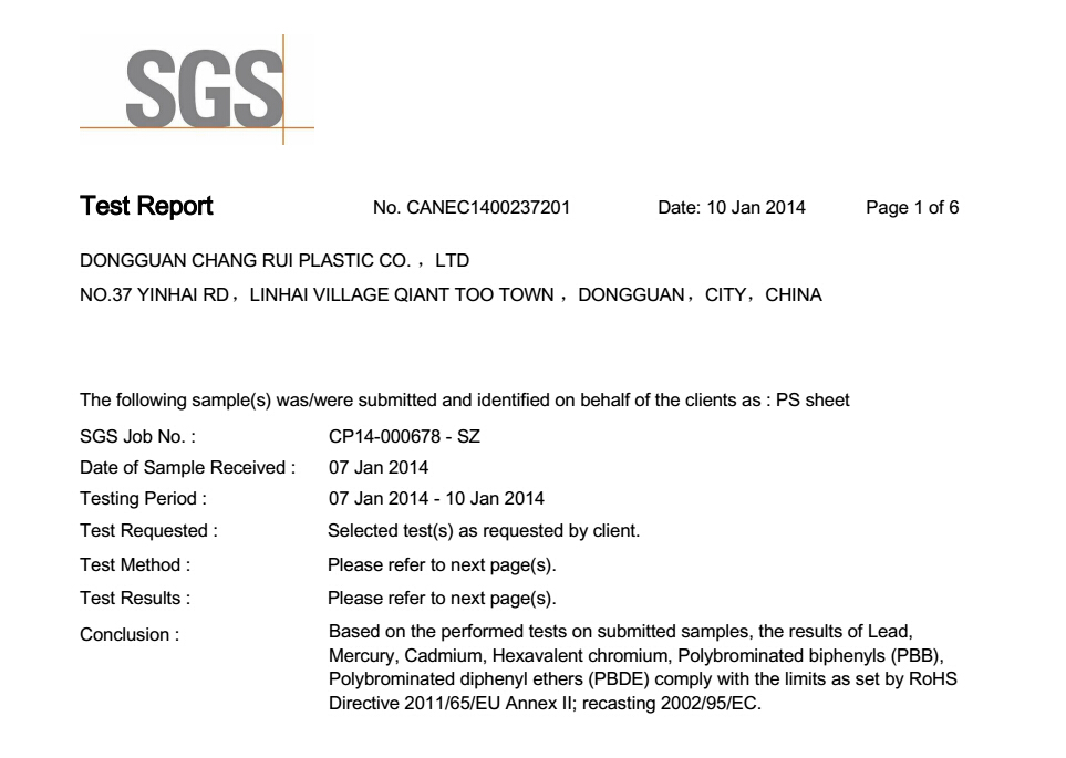 英碩吸塑包裝12年來,在行業(yè)里積攢了各種良好口碑。無論是從吸塑包裝設計還是制作選材,都非常講究,嚴格遵循新時代“綠色”包裝的理念。選材更是不敢含糊,用于食品和醫(yī)療類的吸塑包裝材料,都經(jīng)過權威部門檢測,測試結果均符合歐盟ROHS指令,美國FDA要求。公司環(huán)境要求達到十萬級無塵車間并取得ISO9001:2008。以下是英碩包裝PP/PS/ PET/ PETG材料的相關報告:
