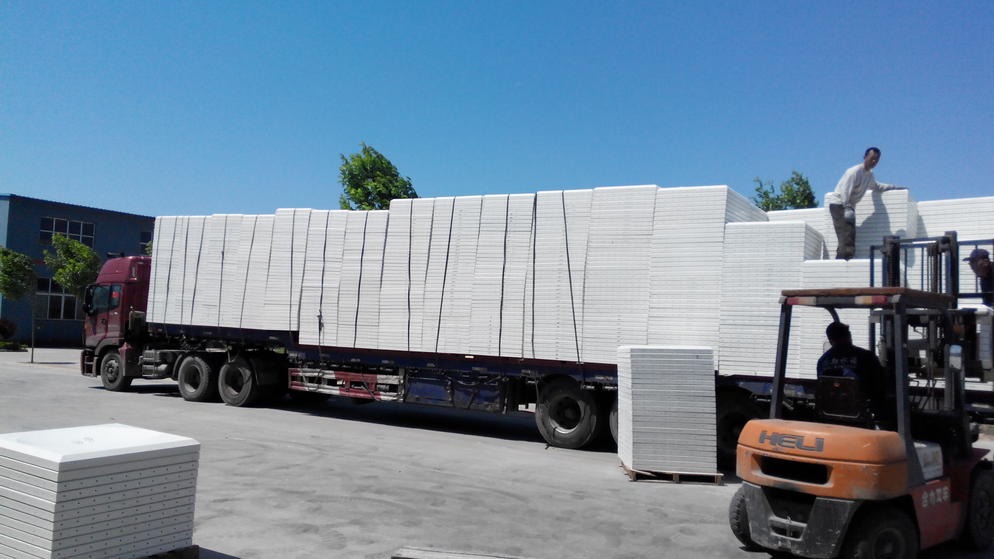 發往北京的玻璃鋼水箱裝車中