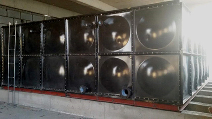為了防止搪瓷鋼板水箱外脹在箱體內加縱向和橫向不銹鋼拉桿,箱底板、側壁和箱頂板均由板塊組裝而成,底板設泄水管,側壁設進水管,出水管和溢水管。搪瓷鋼板水箱側面設爬梯,箱頂設有人孔和通氣孔,由于采用組裝方法,搪瓷鋼板水箱的制作和安裝均不受土建施工影響,不用焊接設備和起重設備,改善了勞動條件,板塊制造工藝簡單,價格低,質量好。