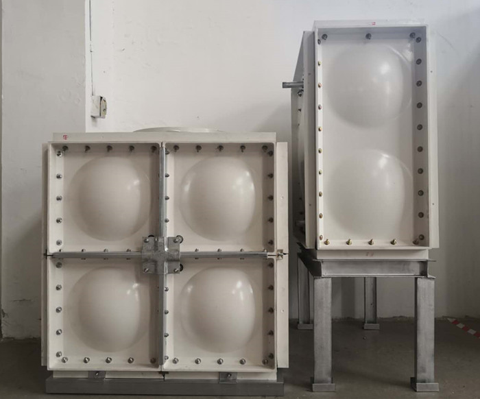 騰翔玻璃鋼水箱是用先進(jìn)的沖壓設(shè)備沖壓出來的高質(zhì)量玻璃鋼模塊組合而成,依據(jù)相對不同的三維結(jié)構(gòu)規(guī)劃參數(shù)來決議運用不同厚度的模塊,在廠內(nèi)或現(xiàn)場實施焊接拼裝。玻璃鋼水箱組成的四個旁邊面及頂板都能夠由玻璃鋼模塊拼裝而成,主要來介紹下水箱底板、槽鋼結(jié)構(gòu)以及資料的選用,這些要素對整個水箱的形狀以及日后是否變形會有很大影響,因而要從水箱的規(guī)劃和裝置開始,要根底的穩(wěn)定性及水箱全體強度。