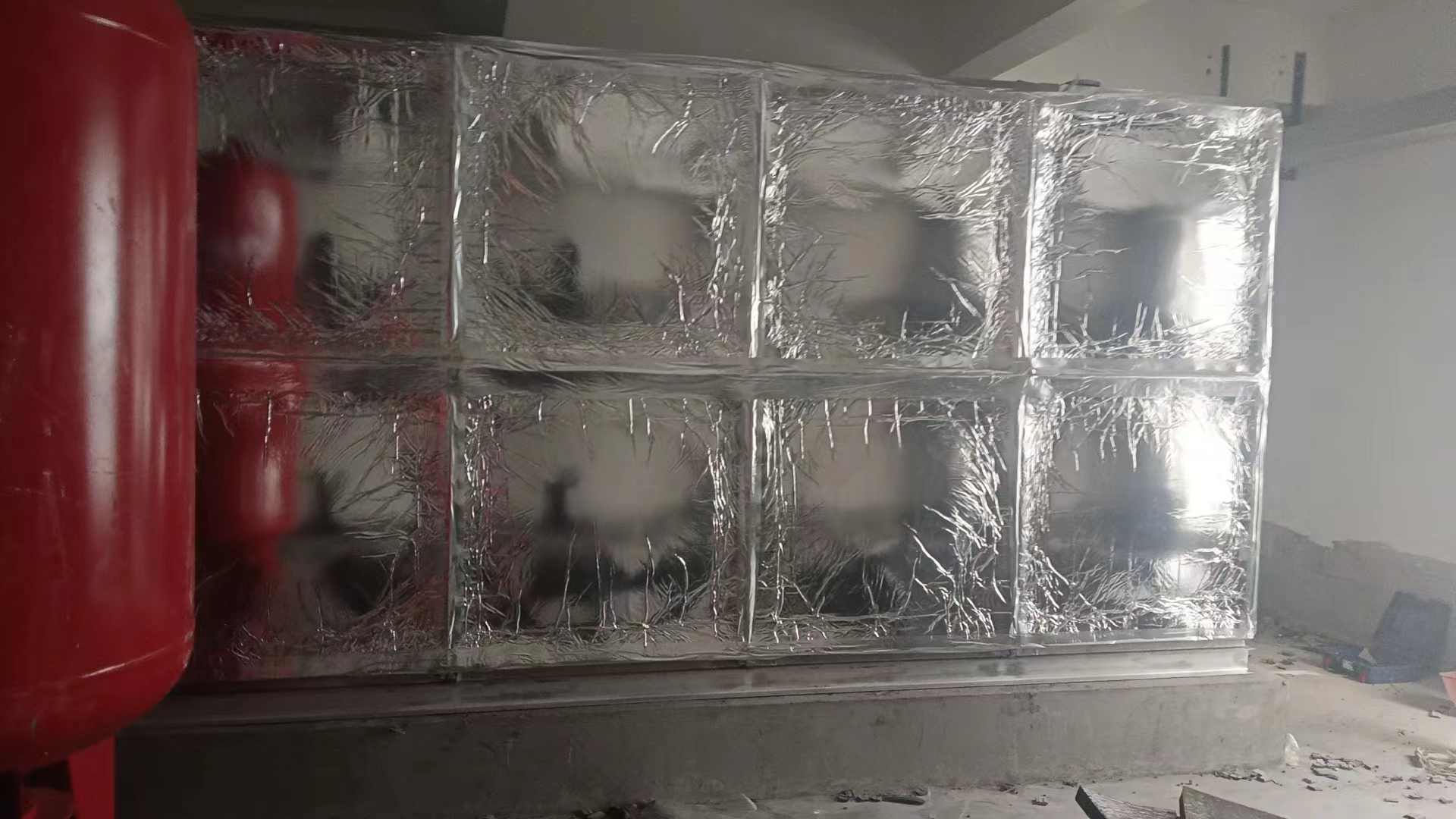 我廠承接的山東省濰坊市泰和東郡1臺56立方304裝配式不銹鋼保溫水箱已經安裝試水完成,水箱位于樓頂室內,水箱四周采用的是橡塑鋁箔布保溫。現場實拍照片如下: