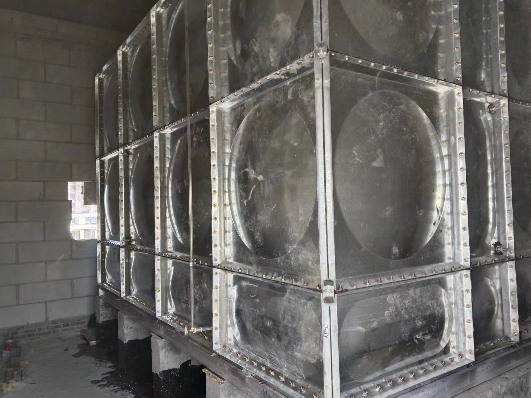 我廠承接的天津市靜海區靜海萬達營銷中心一臺25立方鍍鋅鋼板水箱已經安裝試水完成?,F場圖如下: