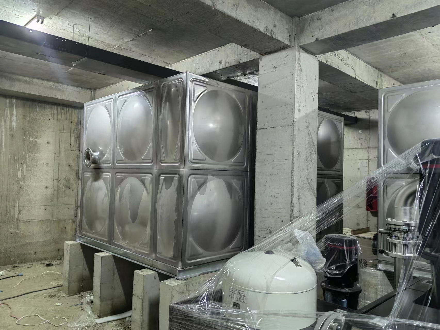 我廠承接的河北省廊坊市榮盛首府項目一臺35立方、一臺17.5立方不銹鋼水箱已經(jīng)安裝完成,此次水箱用于給水水箱,客戶對我公司產(chǎn)品質(zhì)量和安裝服務(wù)表示客人和滿意。現(xiàn)場圖如下: