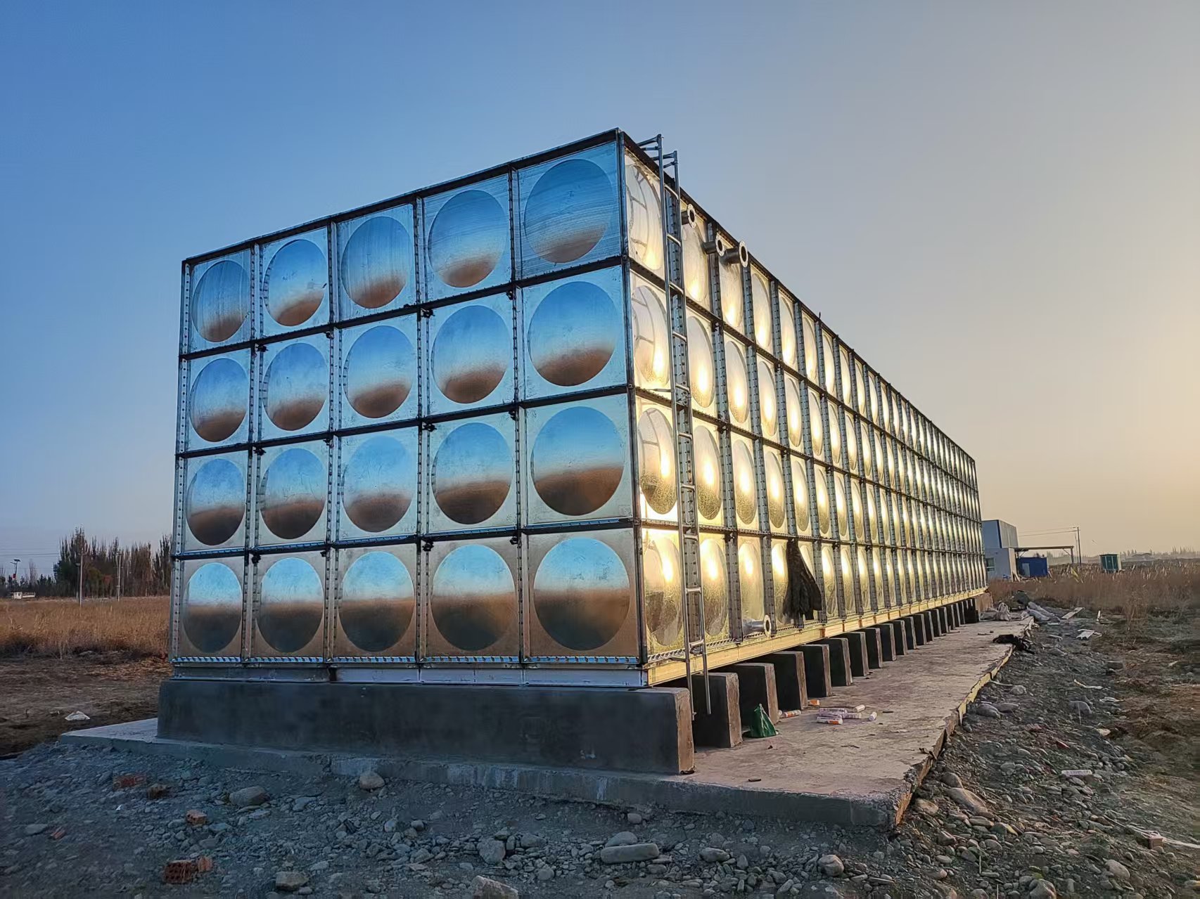 ?新疆庫爾勒,杏干廠鍍鋅鋼板箱泵一體消防蓄水池水箱完工。得到了客戶的高度認可。